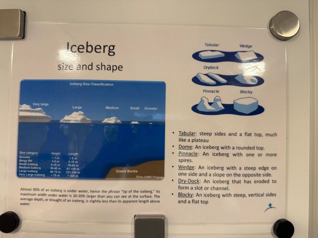 Icebergs: we learned a lot about icebergs and have developed tremendous admiration for them. With only 10% of the icebergs above the water surface and seen by us means 90% is below the water and we fail to understand the actual size of them.