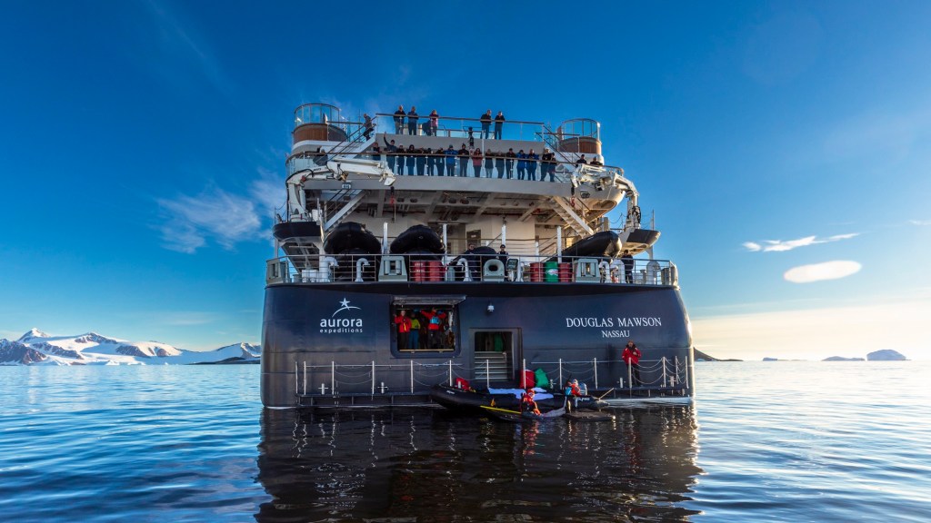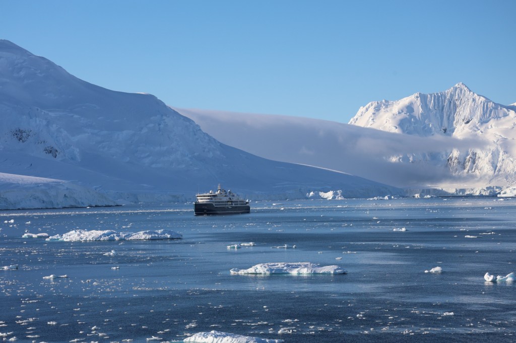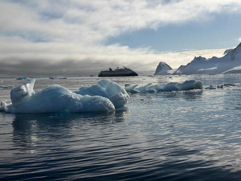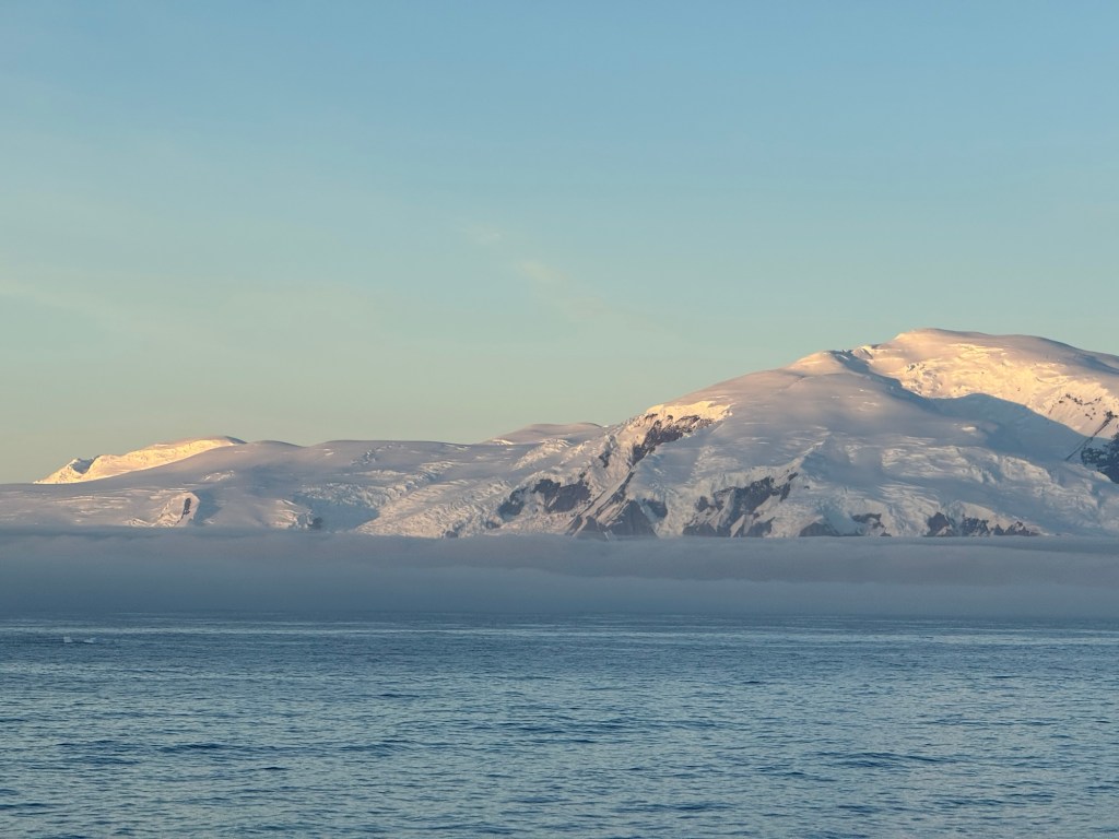 We all gathered on the observation deck admiring the glaciers on rugged land, numerous birds flying around, while the expedition team evaluated the conditions. The swell was high, winds gusty and overall didn’t look promising for even zodiac cruising.