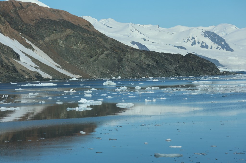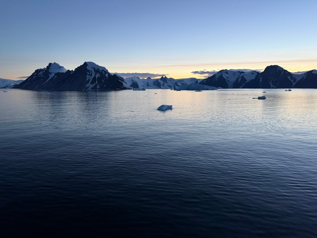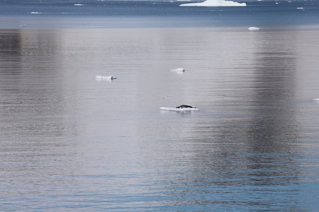 The ocean was like glass. It was a surreal feeling of gliding over this still waterYou could see reflections everywherreBeautiful icebergs dotted everywhereIf you paid attention you could find wildlife everywhere. Here is a seal on a piece of iceTabular iceberg found here too