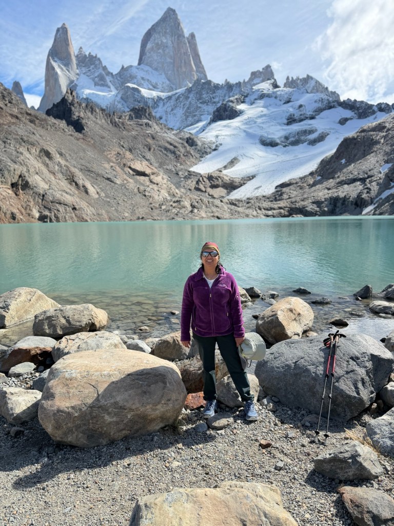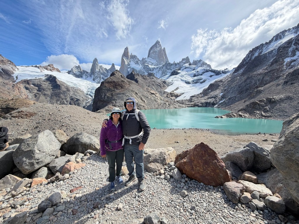 We started our visit to Patagonia with a bang. The Laguna Los tres is a 14 mile hike with elevation gain of close to 3500 feet – this is one of the difficult hikes in Patagonia, if not the most difficult. After minimal to no exercise on the 34 day cruise, this felt daunting. But, we pushed through and did it.