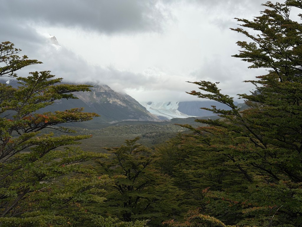 We reached the first view point of the glaciers- mirador del torre point in an hour. The clouds were still gathering and the glacier view was obscured.