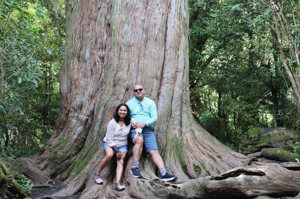 We took a detour to Peel Forest Scenic Road and hiked the Big Tree walk to see the biggest tree in the forest- Kahikatea tree, 60 meters tall and that is about 1000 years old; just about when we got married 😊. The red wood from these Kahikatea trees were used for canoes by the native Maori people.