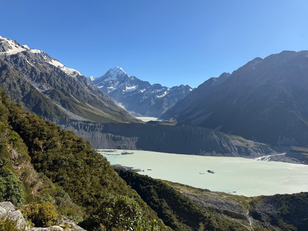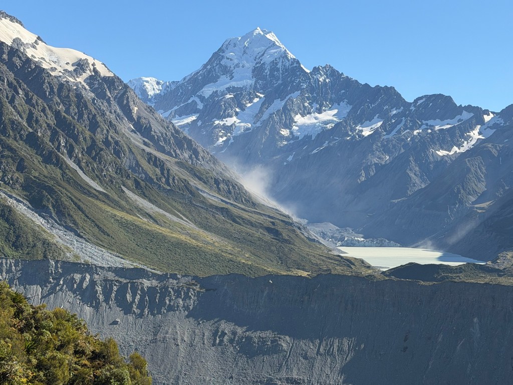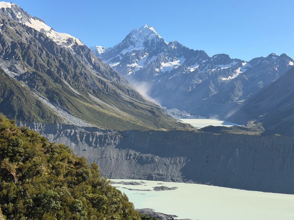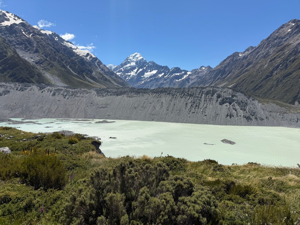 After this hike, Mayuresh joined me for a short hike to Kea Point. This hike takes you to the small glacier fed lake that is seen from the Sealy Trans hike. Wind was brutal here as well.