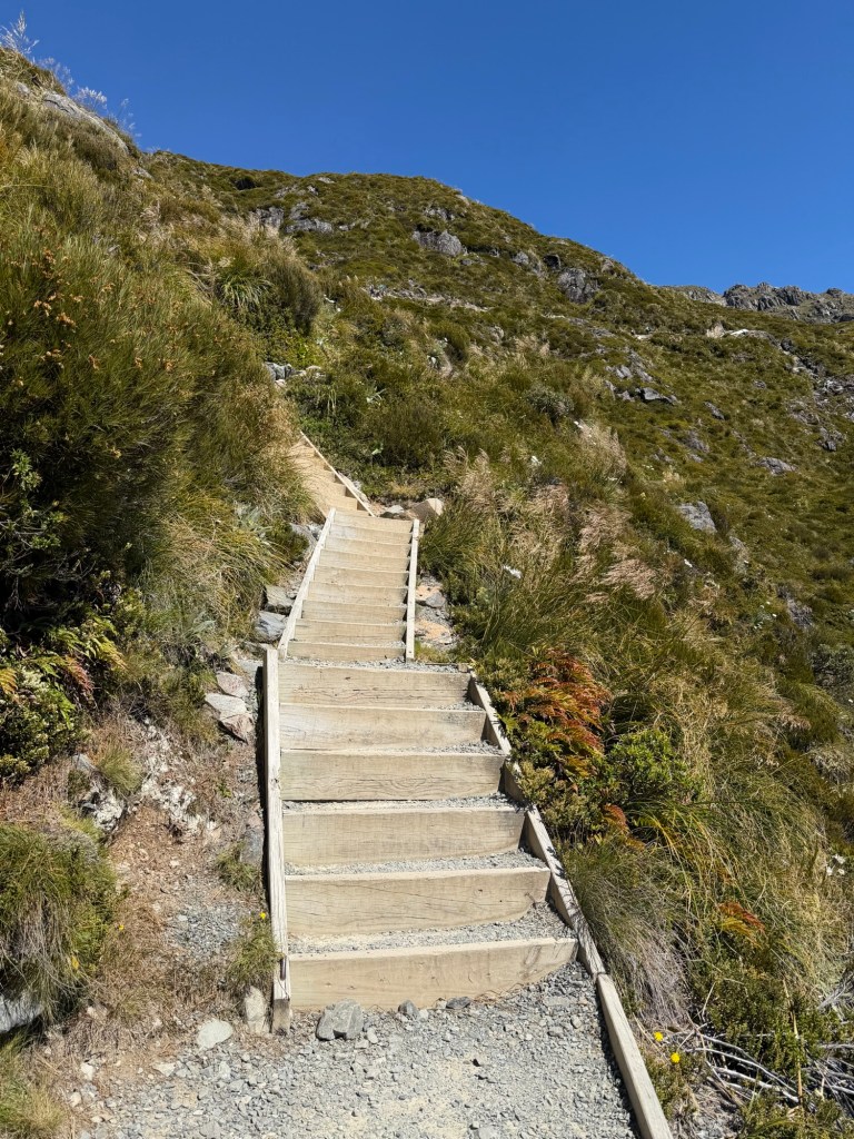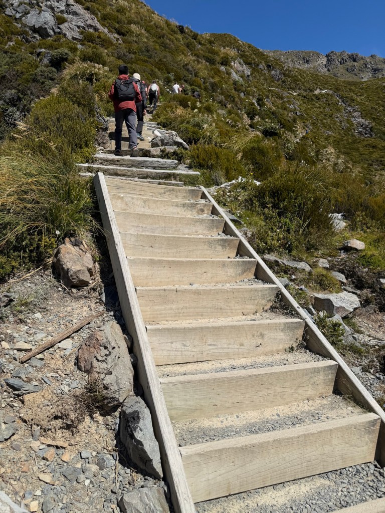 We hiked the Sealy Trans hike which is a difficult hike because of the uneven 2200 steps, and 1800 ft ascend in the short span of 1.5 miles. It is called the “staircase to heaven”. We were slow as we climbed, but the views of the Mount Cook kept us going as the valley kept dropping away from us.