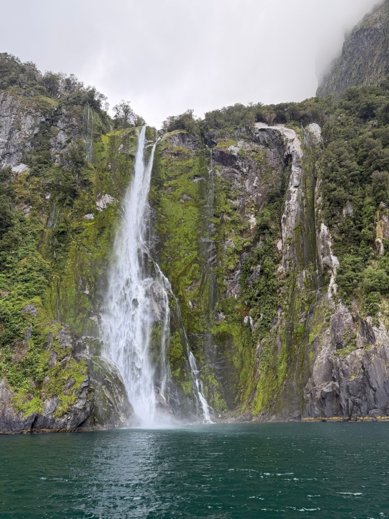 Next day- It rained all night long so we slept well. Woke up early, had a quick breakfast while captain went back out in the sound for another hour. All that rain meant many more waterfalls and those we had seen before were very energetic.