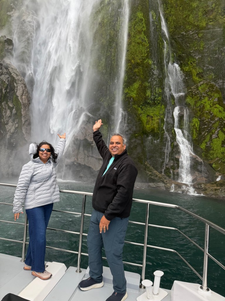 After entering in Tasmania Sea briefly, we started return journey in the sound and visited Sterling Fall. We visited the fall and got close enough to get drenched in the mist. That means we look 10 years younger, per captain.