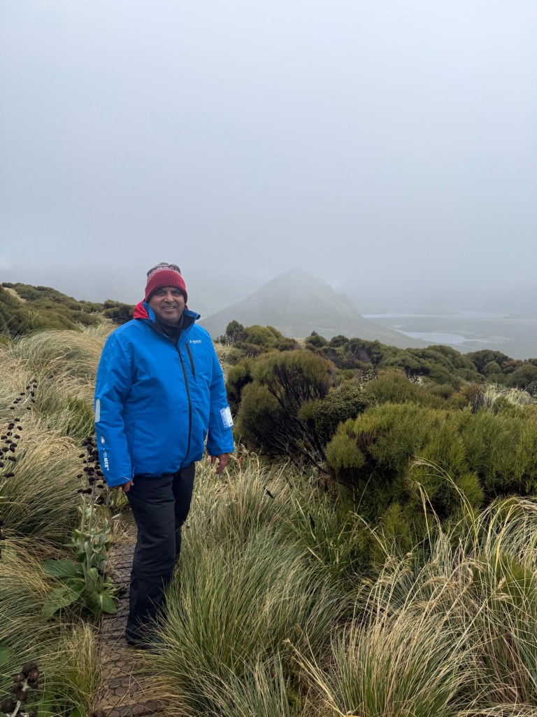We visited Campbell Island today in sub-Antartic region of New Zealand. As we left Auckland island, our expedition leader announced that weather on the Campbell Island was not optimal for walk because of the 35-40 mile wind and gust of 49 miles. Still we decided to hike on boardwalk for 4 miles in a short time of 3 hours. Why?Because we wanted to watch nesting Albatrosses along the boardwalk.