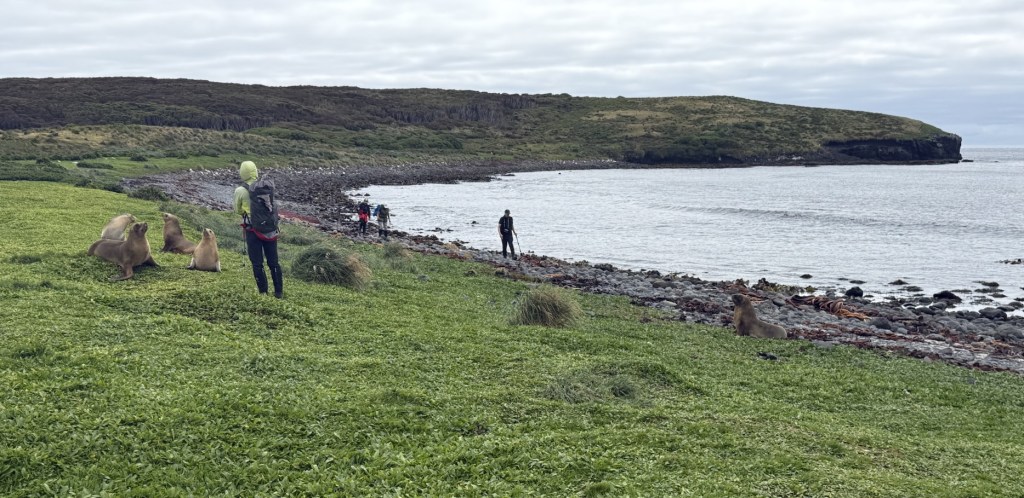 Today we woke up to calm seas and great balmy weather. Perfect weather for a hike or a long walk. We had signed up for a long walk around the Enderby islands. During the briefing the expedition team mentioned that a 11-14 Km walk will take 5 hours, we were shocked. Especially since they mentioned that the terrain is undulating and not really steep.