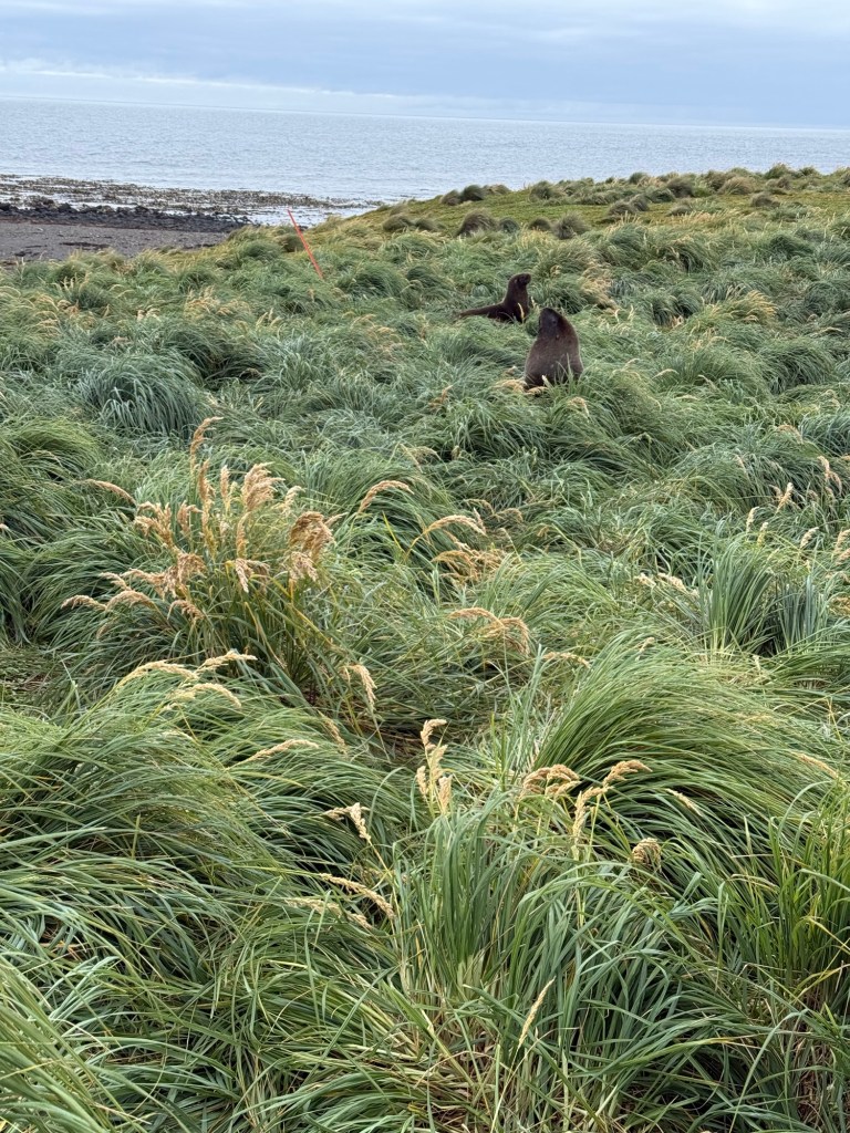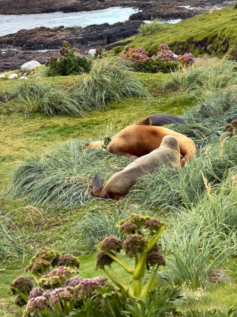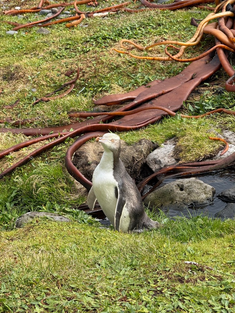 We literally bushwhacked our way through thick and tall tussock grass, crossed multiple bogs, slipped/got stuck in a few of them, tried to walk quietly past huge sea lions and tried to appear non-threatening to the Hiho penguins (yellow eyed penguins).