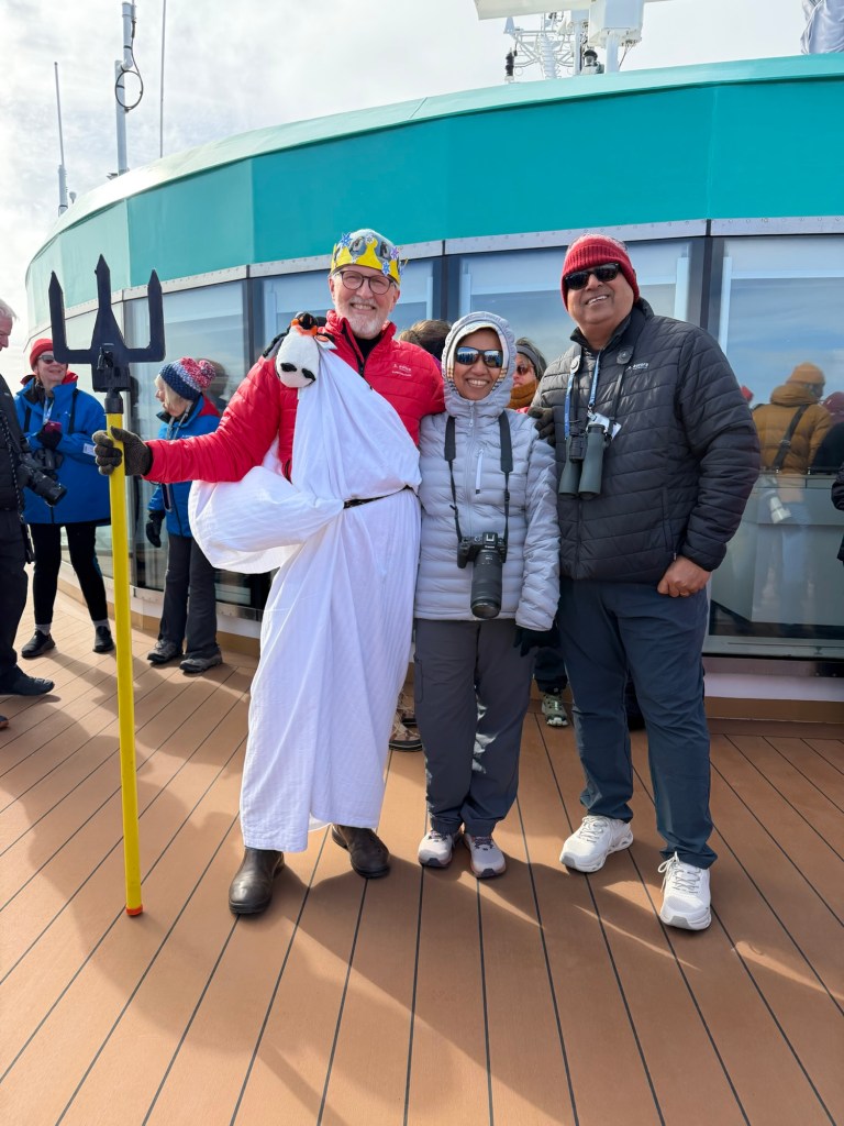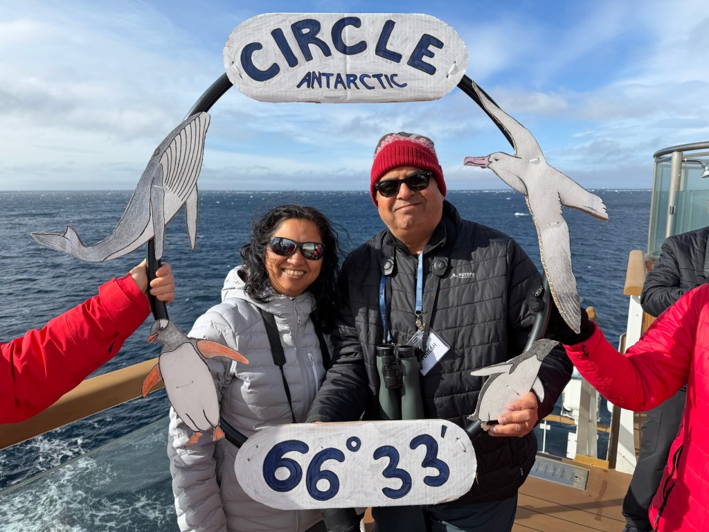 There was a countdown followed by ship blowing its horn as we crossed the circle. We followed it with a champagne toast and ceremonial pictures. We also got our Antartica names King Penguin (Shraddha) and Frostbite (for me).