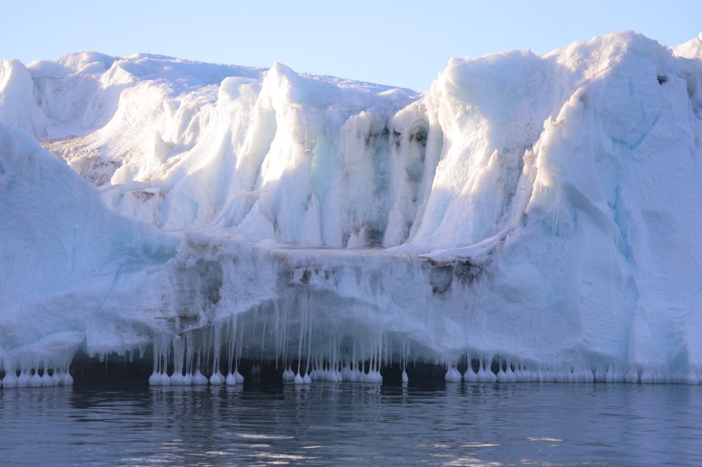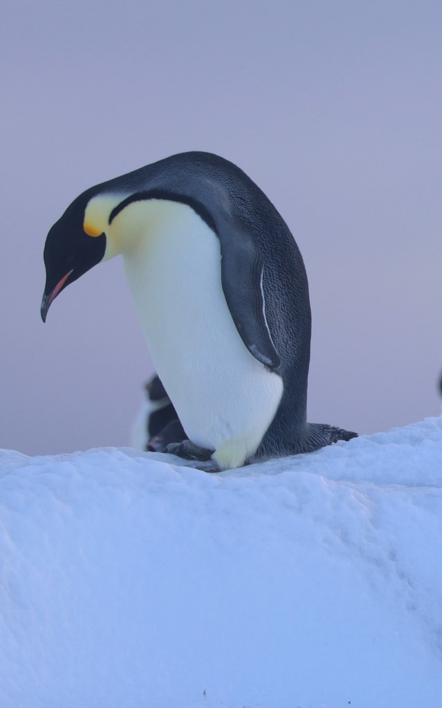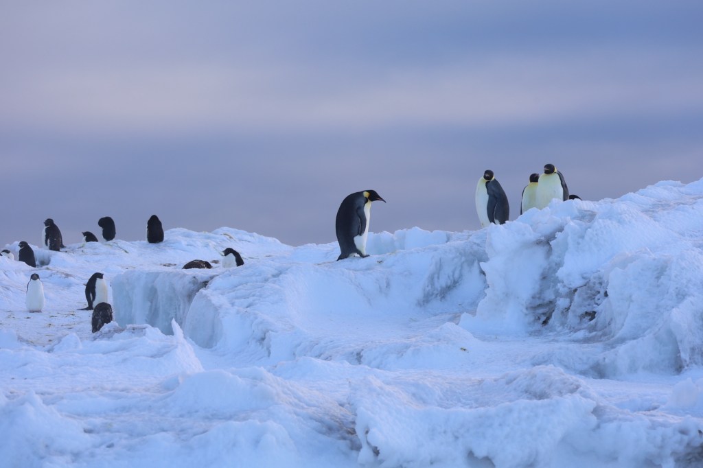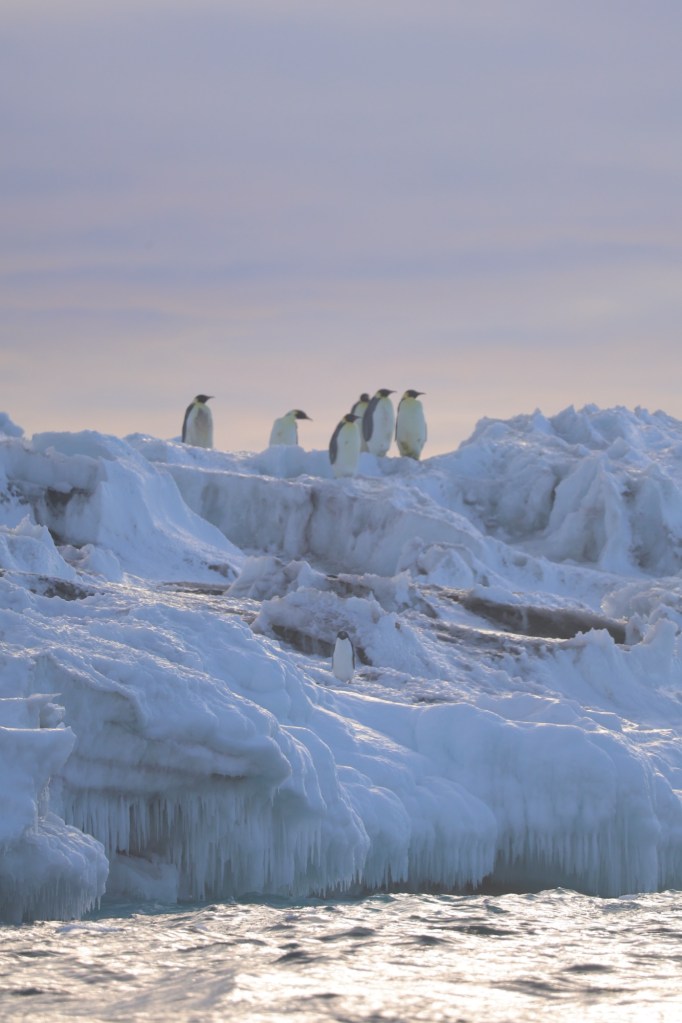 The highlights today were being able to touch the Ice Shelf, tasting ice from an icicle off the shelf and seeing a group of Adelies and Emperor Penguins on the ice together.